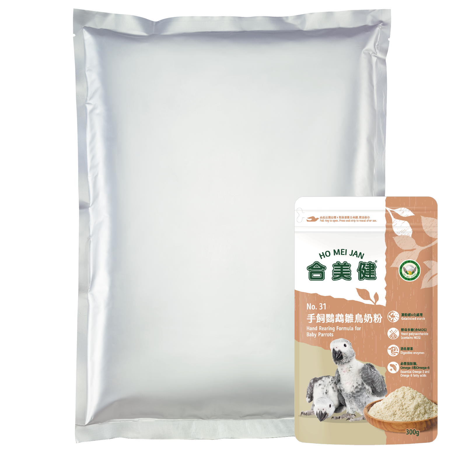 綜合穀物、α-澱粉、大豆分離蛋白、脫水蔬果粉、植物油(Omega-3和Omega-6來源)、脫脂奶粉、綜合消化酵素、啤酒酵母、酵母多醣(含MOS)、香草粉、洋車前子、卵磷脂、綜合維生素、螯合型有機礦物質、鹽。